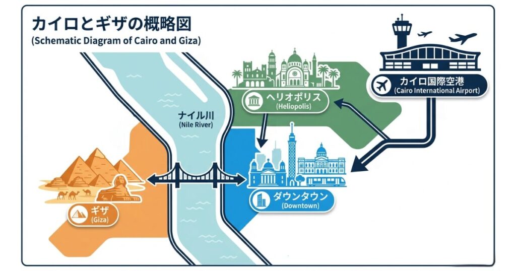 カイロ中心部とギザの地理的位置関係とアクセス
