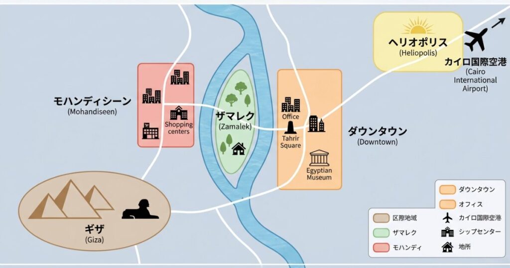 カイロ中心部の主要4エリア別特徴