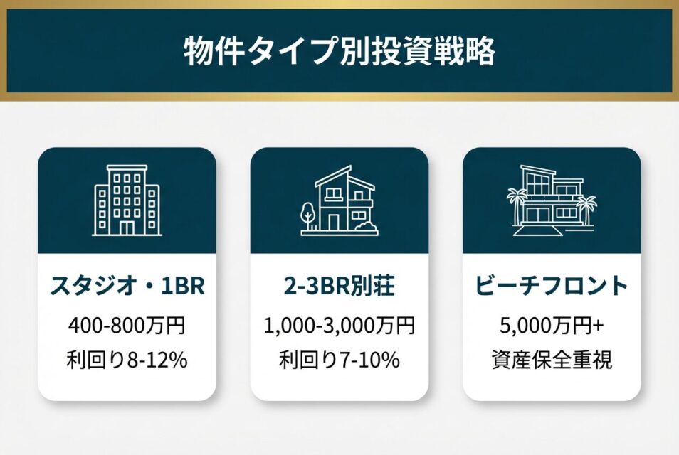 2〜3BR別荘 1,000〜3,000万円 7〜10% 5〜8% ファミリー・小グループ