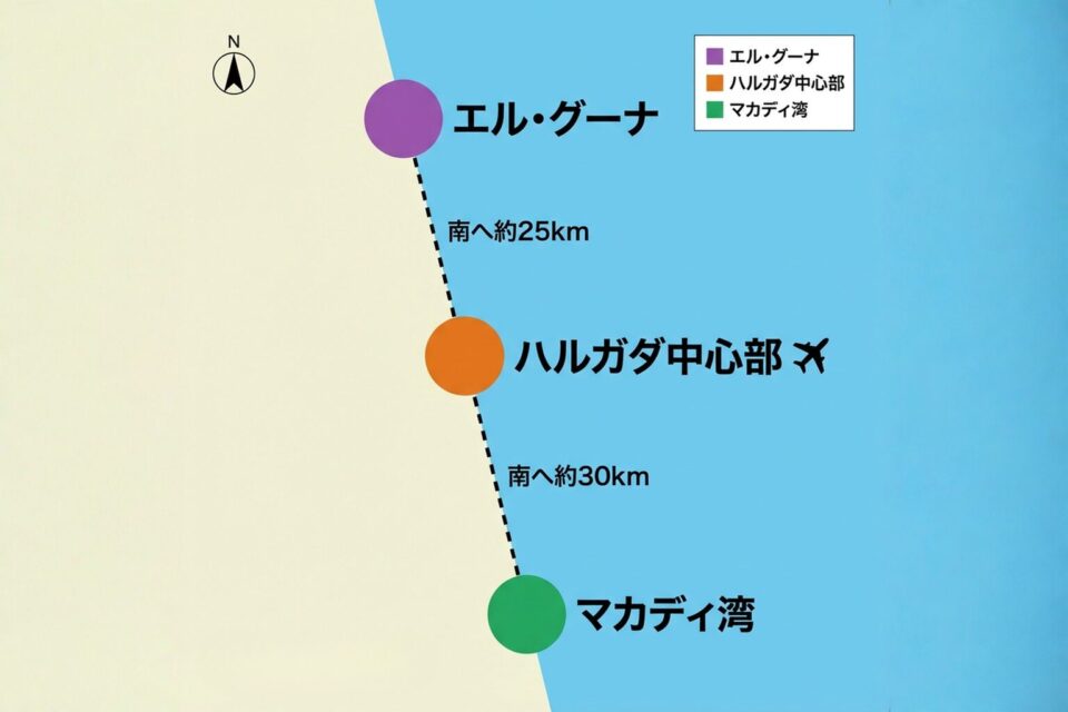 ハルガダ・エル・グーナ・マカディ湾の位置関係と特徴概要