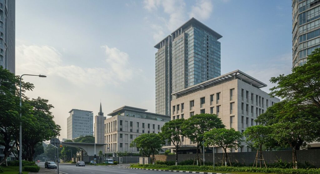 住宅市場では、新開発物件の平均価格が18億ルピア(約1,350万円)からスタートし、大使館エリアのプレミアム立地を反映した価格設定となっています(*13)。これらの物件は、国際基準のセキュリティと生活利便性を備えており、外国人居住者のニーズに特化した設計となっています。